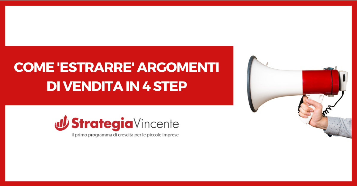Oggi ti parlo di un altro elemento fondamentale per la vendita e soprattutto per lo sviluppo commerciale delle piccole aziende del nostro territorio, ossia gli argomenti di vendita, cioè tutto quello che dici, scrivi